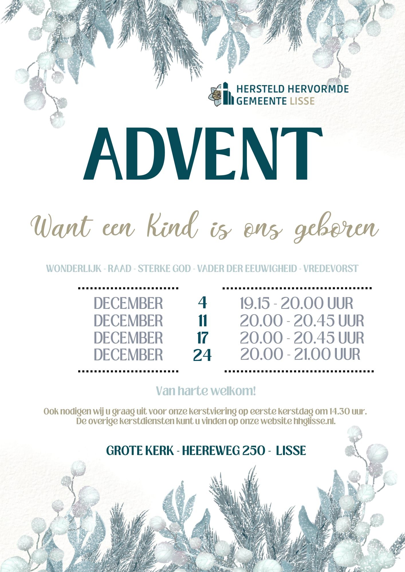 De Hersteld Hervormde Evangelisatie Lisse hoort bij het kerkverband van de Hersteld Hervormde Kerk, en is opgericht in 2025.